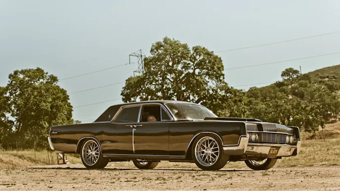 The Continental in Hit and Run is a black-on-black 1967 four-door hardtop, that star Dax Shepard owned for more than ten years before filming the movie. To make the car more exciting, Shepard dropped the stock 462 and replaced it with a snarling Ford Racing 521 cubic-inch V8 crate motor, good for close to 700 horsepower. Power was fed through a Ford C6 transmission with a Gear Vendors overdrive to a 9-inch rear with 3.77 gears.
