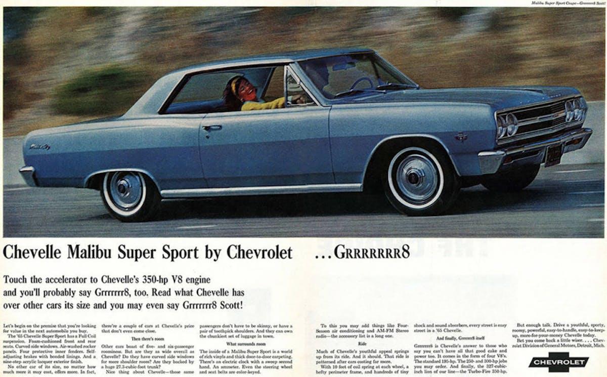 In the Malibu coupe (which is the car seen in the movie), engines ranged from a rather anemic 100 horsepower, 175 lb-ft of torque, 250-cubic-inch Turbo-Thrift six cylinder, to a 350-cubic-inch V8 Turbo-Fire Hydra-Matic that pumped out 175 horsepower and 260 lb-ft of torque.