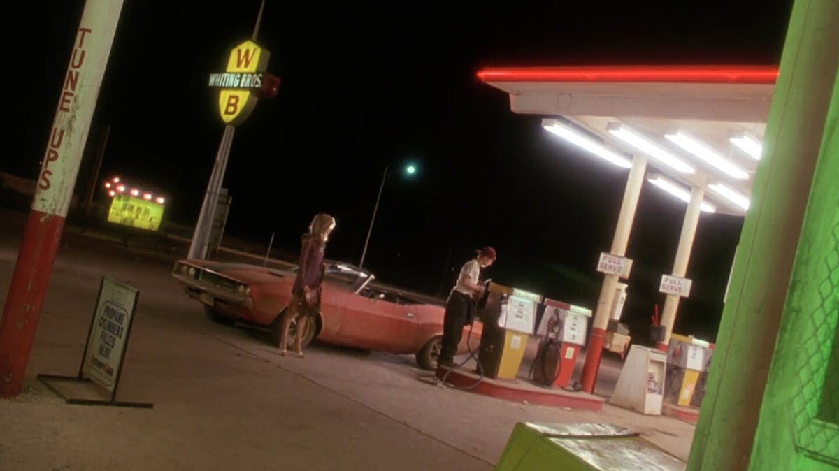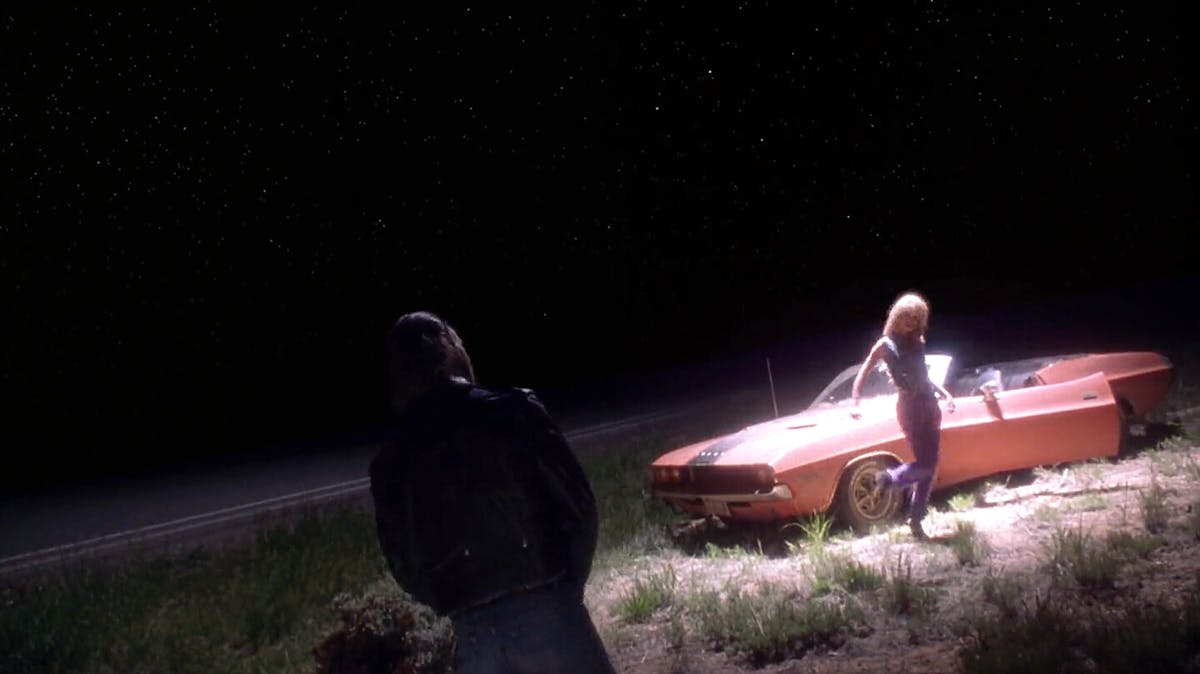 The Challenger features prominently in the first half of the picture, as Mickey and Mallory wind through arid, western states in it. Although there are no high-speed chase scenes or smokey burnouts to be had here a la Vanishing Point and its 1970 Challenger R/T, the car does look right at home set against desert locales and, as such, inspires some comparisons to that earlier film.