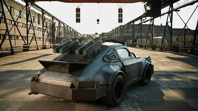 All of the cars were heavily dressed in armor, machine guns, rockets, and other prop dressing accoutrements to the cost of roughly $250,000-$300,000 per car. It took production designer, Paul Austerberry, and a crew of over 70 mechanics, prop dressers, technicians, and fabricators approximately six weeks to put the cars together and have them be race-ready.