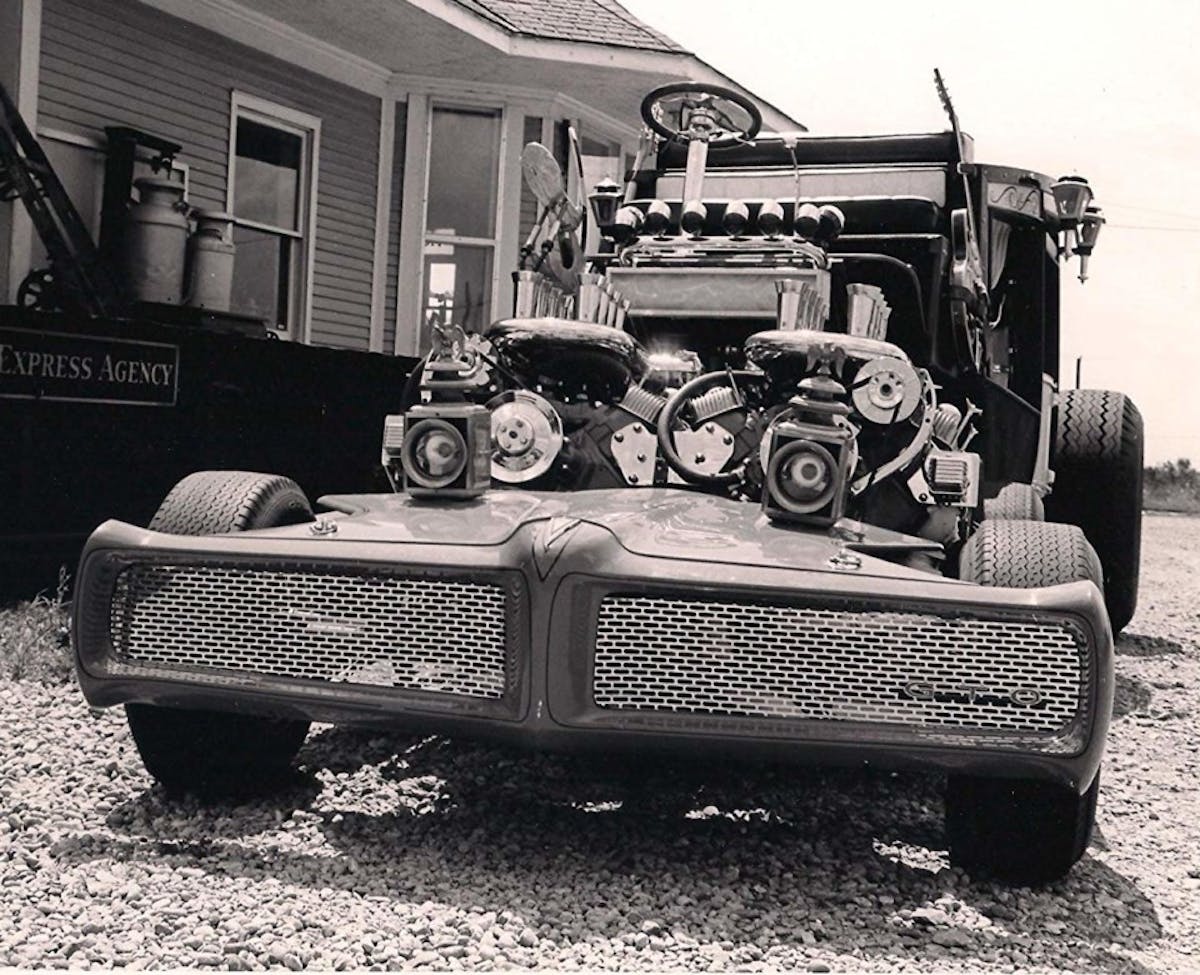 Designed and built in 1968 by the ubiquitous George Barris, it mimicked a hot rod stagecoach pulled by a Goat-faced, separately suspended, articulated team of 428 Pontiac mills replacing its equine equivalent. A keen eye will notice signature-themed Barris tricks like amps and a Vox organ built into the back of the rod.
