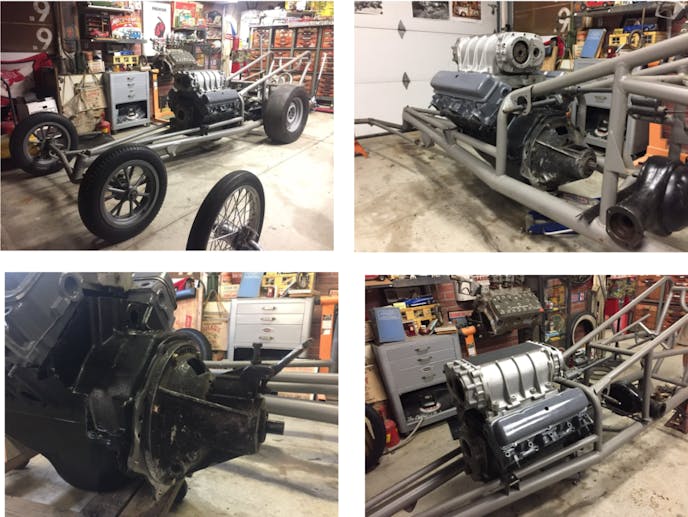 The story on the matching chassis goes like this: Some kids got out of the Navy and decided to go drag racing. They bought the chassis from Scotty Fenn’s shop and got as far as kingpins. One of the friends bought the wrong size kingpins and forcefully tried to install them. They had a huge falling out and the chassis ended up collecting dust in one of the friend’s mother’s garage.