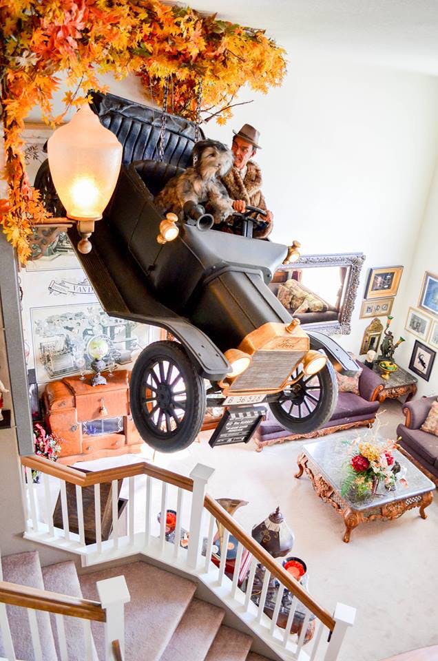 A visit to his family homestead was amazing. In the living room hanging from the ceiling, was a paper mache’ replica of Fred McMurray’s Model T from the movie “The Absent Minded Professor.” They had acquired from the Movieland Wax Museum in Buena Park, CA and it joins an incredible collection of treasures and artifacts from Hollywood’s golden era.