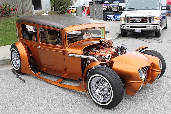 The original form included a fogged gold paint scheme with plenty of chrome for a show car appearance. The unique rod made its debut appearance without fenders at the 2002 Yokohama Hot Rod Custom Show in December of that year. Taking home several awards, including the Best Street Rod and Best Body Work awards.