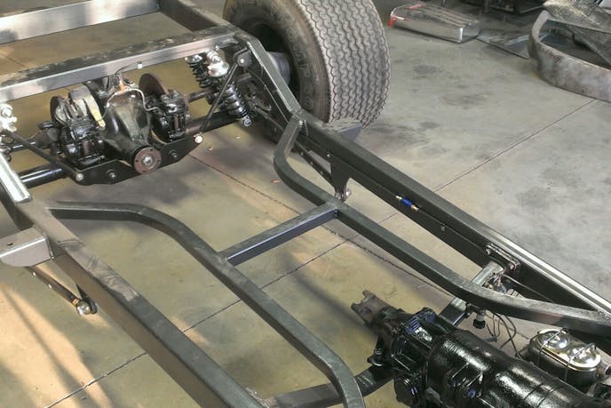 The details that could easily get missed are part of what makes this car so great. “Did you see the iron cross in the firewall?” Ryan asked. A closer examination exposed the semi-hidden fabrication work. “I fabricated the custom firewall with a recessed iron cross,” he said proudly.