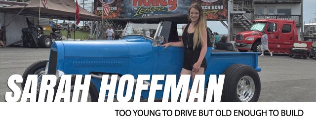 Sarah Hoffman of Austin, Texas, describes herself as a tomboy, but after meeting her in Pueblo, Colorado, at the NSRA Colorado Nationals event, we beg to differ. She was standing next to a 1929 Ford Roadster Pickup chatting with her Grandpa when we approached. One of the NSRA officials clued us in on Sarah’s story. He told us she was only 17 and we should ask about “her car” because she built it.