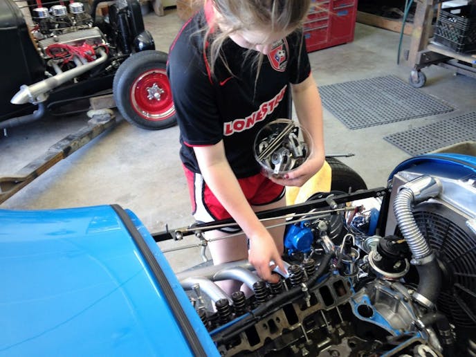 I grew up as a simple tom-boy type. I liked tennis shoes, soccer, and hated the color pink. I liked going to Grandpa’s shop. At first, I would go to look at his cars and spend time with him. I’ll never forget the day he handed me a paint brush and asked me to do touch-ups on his ‘35. It wasn’t much but I liked it. Then I wanted to know how to use every single tool in his shop.