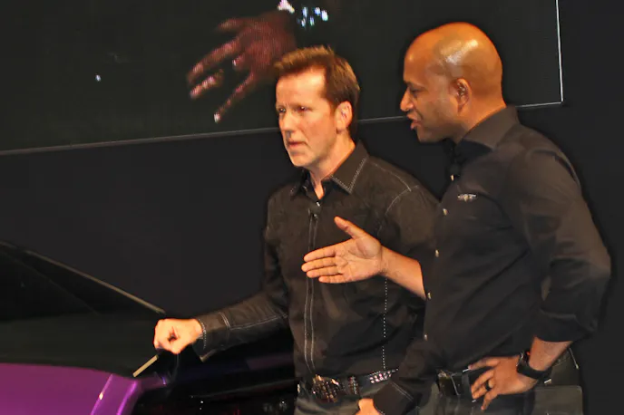 One of the featured guests was ventriloquist and comedian Jeff Dunham, who helped unveil a 2012 Challenger that he played a part in designing. Dunham got up on stage for the unveiling along with Mopar President and CEO Pietro Gorlier, SRT President and CEO Ralph Giles and Alan Palmer from Palmer’s Customs. The car, Project Ultraviolet, began life on the drawing board and Dunham helped bring it to life with the help of Palmer.