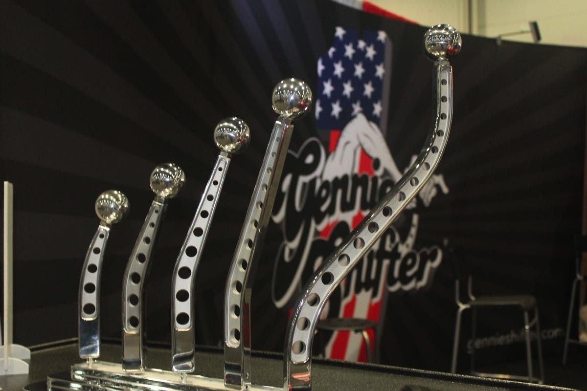 We stopped by Gennie Shifter’s booth this year to see what they had in store for those looking to round out their transmissions. The folks at Gennie Shifter have done an amazing job growing their line of shifter products, especially for those running automatics. If you’ve found yourself pounding your head looking for an aggressive looking shifter to set off your hot rod or kustom’s automatic transmission, their Commander Series is a dream come true.