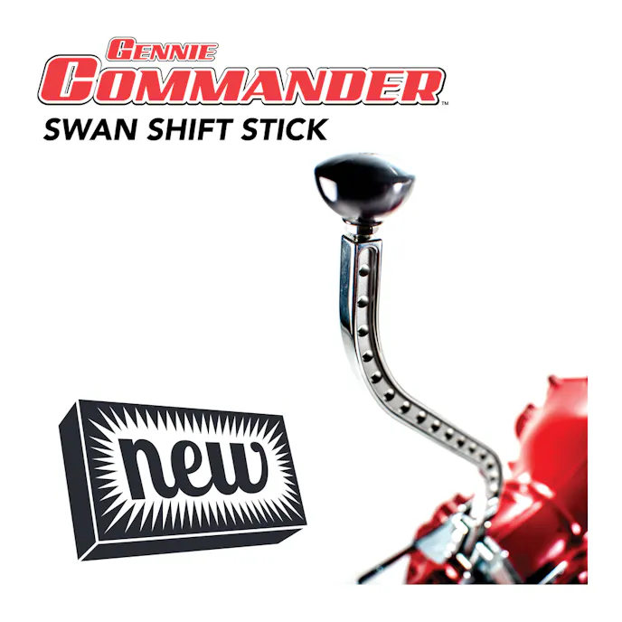 Loc Briggs of Gennie Shifter gave us the lowdown on what the company has been up to as of late, “Our featured product for the year is the Commander Series of shift sticks. As with all our products, these are made in-house at our headquarters in Denver, Colorado. Newest to the Commander Series is the “Swan” shift stick. The double bend “Swan” is the king of the Commander Series.”