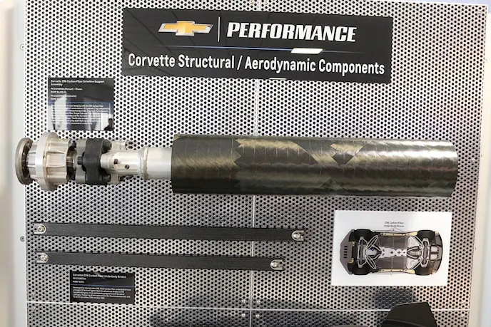 IMG_3088The Z06 Carbon Fiber Torque Tube Assembly reduces weight by nearly 15.5 pounds, as reported by Chevrolet. Assembly with high temperature rubber couplers means this driveshaft will stand up to punishing track temperatures.