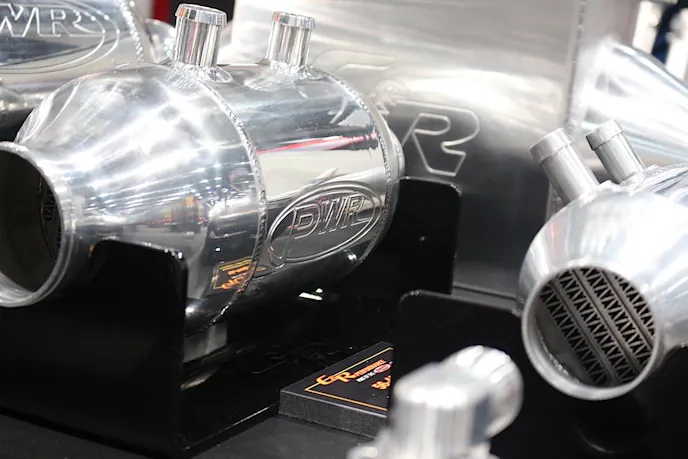 Among the more exciting products are the inline intercoolers for racing applications with limited space. According to Paul Hammond of C&R, the barrel intercoolers are available to support power outputs from 400 up to 1,500 horsepower.