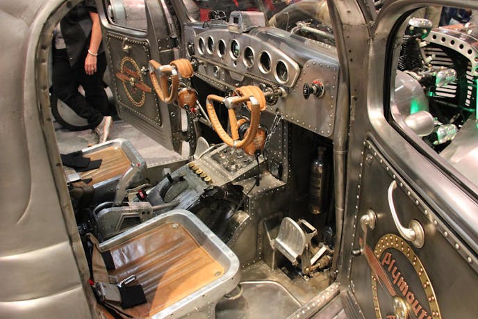 Builder Gary Corns assembled this one-of-a-kind 1939 Plymouth truck two years ago, with power from an early 1950’s Cessna radial engine out of a C195 airplane. Measuring 757 cubic-inches and with seven cylinders and 14 spark plugs, the mill produces around 300 horsepower and enough noise to hear it coming from the other side of Nevada.