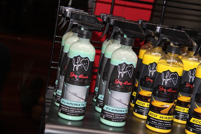 We dropped by Jay Leno’s Garage booth at the SEMA show to see what car care products the team had brought to the after market automotive’s largest trade show of the year. Chris Walters, the Marketing Director for the company, mentioned a bottled “drying aid.” Intrigued by the prospect of a drying aid in a bottle, we asked the question: “What is a drying aid?”