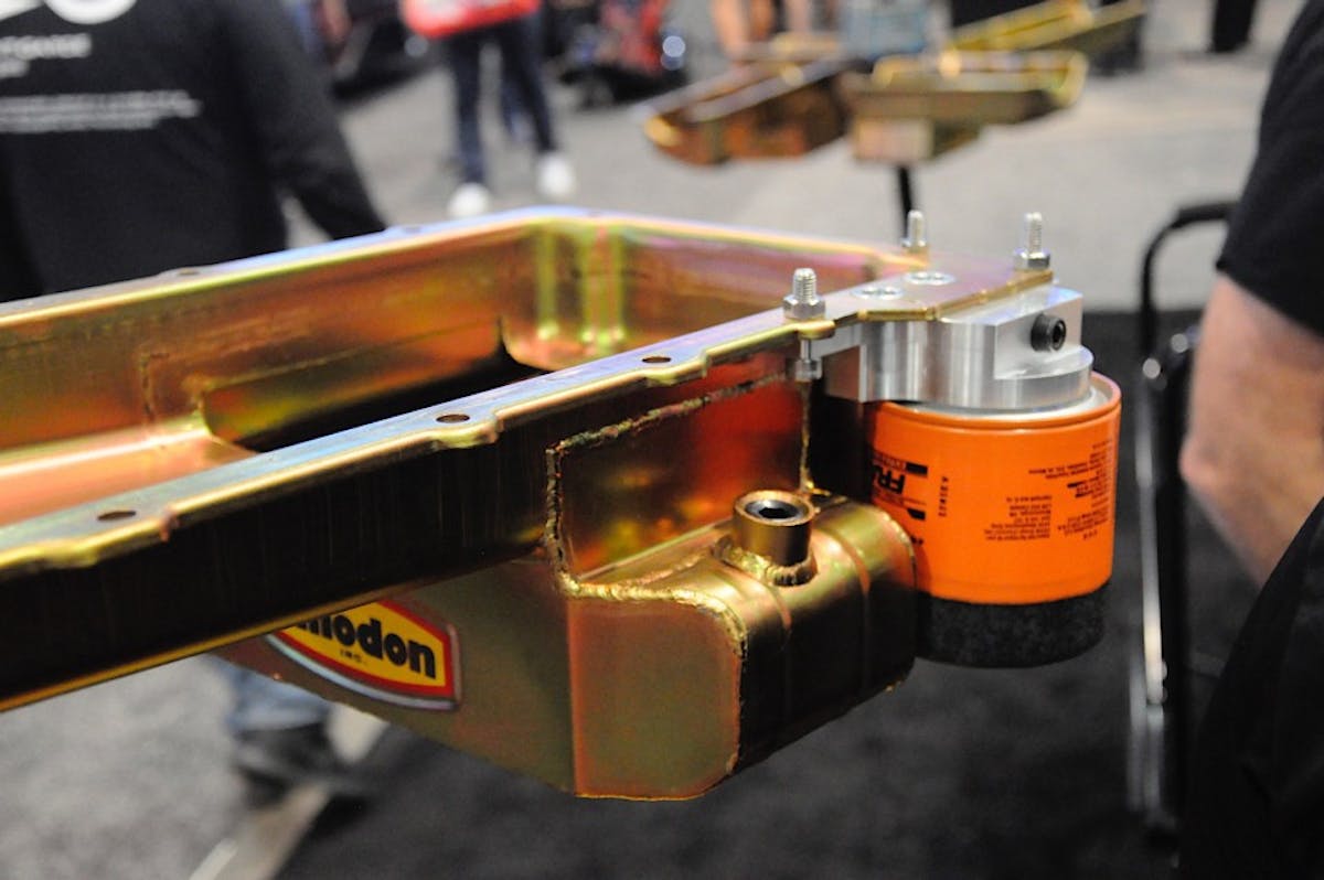 The Pro Touring pan is designed to be used with the LS1, LS2, LS3, LS6, and LS7 engines, and fits most GM chassis including the Corvette. The pan uses a billet filter block that can either mount to the pan, or you can run -AN fittings and lines to remote mount the filter housing. This will allow you to run either the factory oil filter or you can run a ’70s-style filter for 40-percent better filtration. Milodon also offers a pick up tube, windage tray, pan bolts, gaskets, and other accessories you might need.