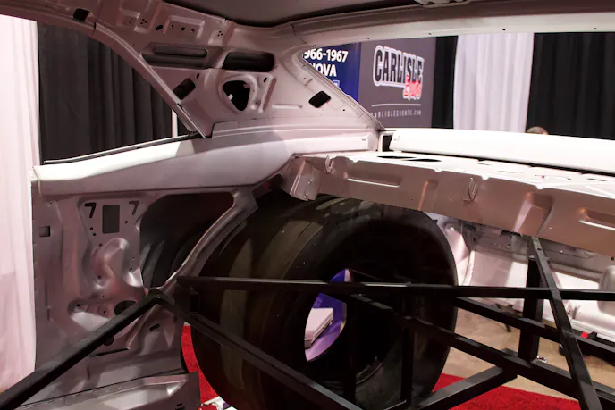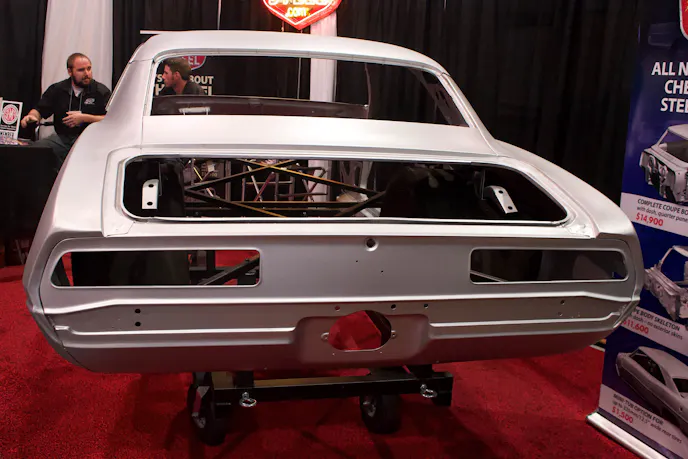 We got a chance to stop by the booth at the 2018 SEMA show and spoke with Mike Vineyard, and he had this to say about the Camaro race bodies Real Deal Steel is known for, “So, basically we produce Camaro bodies, Tri-Five bodies, Chevy II bodies. We do them in race car bodies with no floor, no inner or outer wheel tubs, and no firewall. This makes it easy for the guys running in differing race applications that require steel quarter panels, and steel roof. We also offer the full bodies, where they come with doors, a decklid, and everything is gapped. You have your choice of firewalls, stock and mini-tub options – the options are limitless really. People call us and we can do whatever they need before it ever leaves our shop. Like leaving the roofskin un-welded for guys that know they’ll be putting in a roll-cage.”