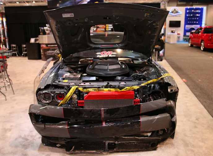 It was rough, but we managed to squeeze between the droves of people crowding to see the smashed-up Dodge and grab an interview with Procharger CEO, Ken Jones. Ken shed some light on just what happened and how they were able to recover the Challenger in time for the show.