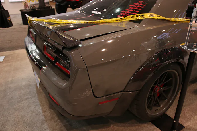 There’s no wondering why, either. The Challenger carried a striking presence in the booth, with the smashed frontend and caution tape draped around it. We asked Ken what the plans are as far as restoring the car, and he told us “The owner had planned on attending the show and seeing the car for the first time, but when he got the news, he canceled his trip.”