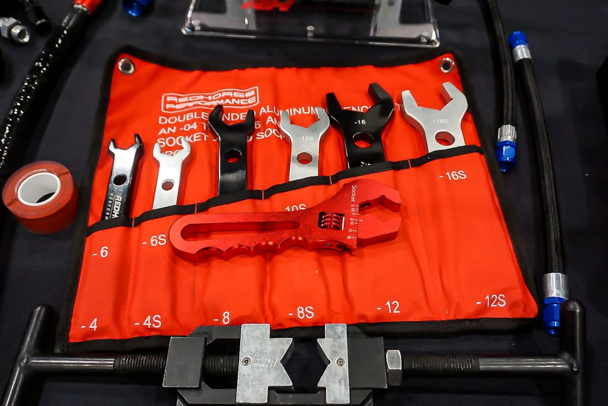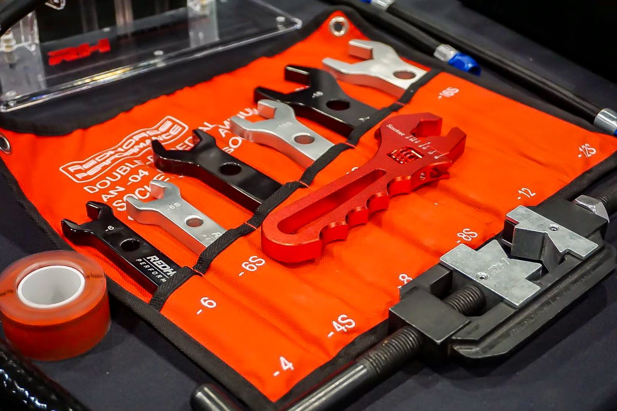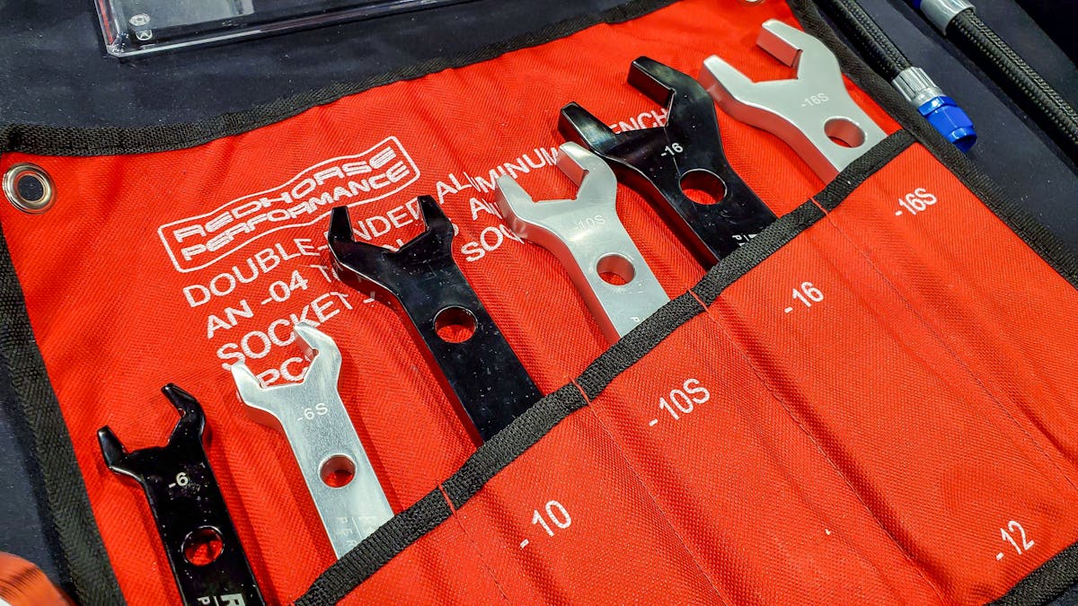 Redhorse Performance‘s display at SEMA 2019 was mesmerizing. A wide array of fittings and tools (all gleaming like jewelry), stole our attention and had us dreaming about how we could spruce up our engine bays and stock our toolboxes. We took a long gander at the aluminum AN wrenches, both the double-sided wrenches and the adjustable wrenches, and our jaws dropped.