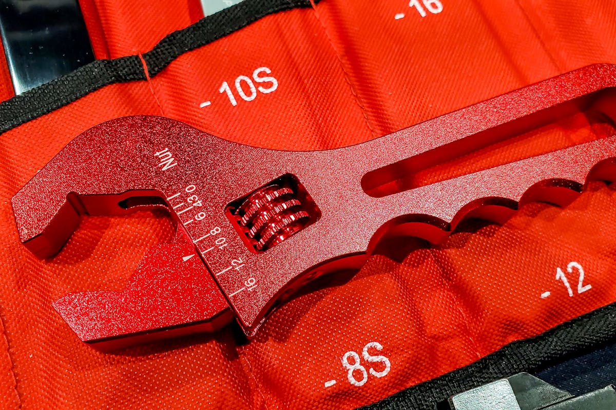 As pretty as the double-ended wrenches are, Redhorse’s adjustable wrenches are the unmistakable winners of the beauty pageant. In addition to looking incredible, the easy-to-read guide on the face of the wrench shows the correct sizing for -3AN to -16AN socket and nut sizes, which save the user time and hassle when working with multiple wrenches.