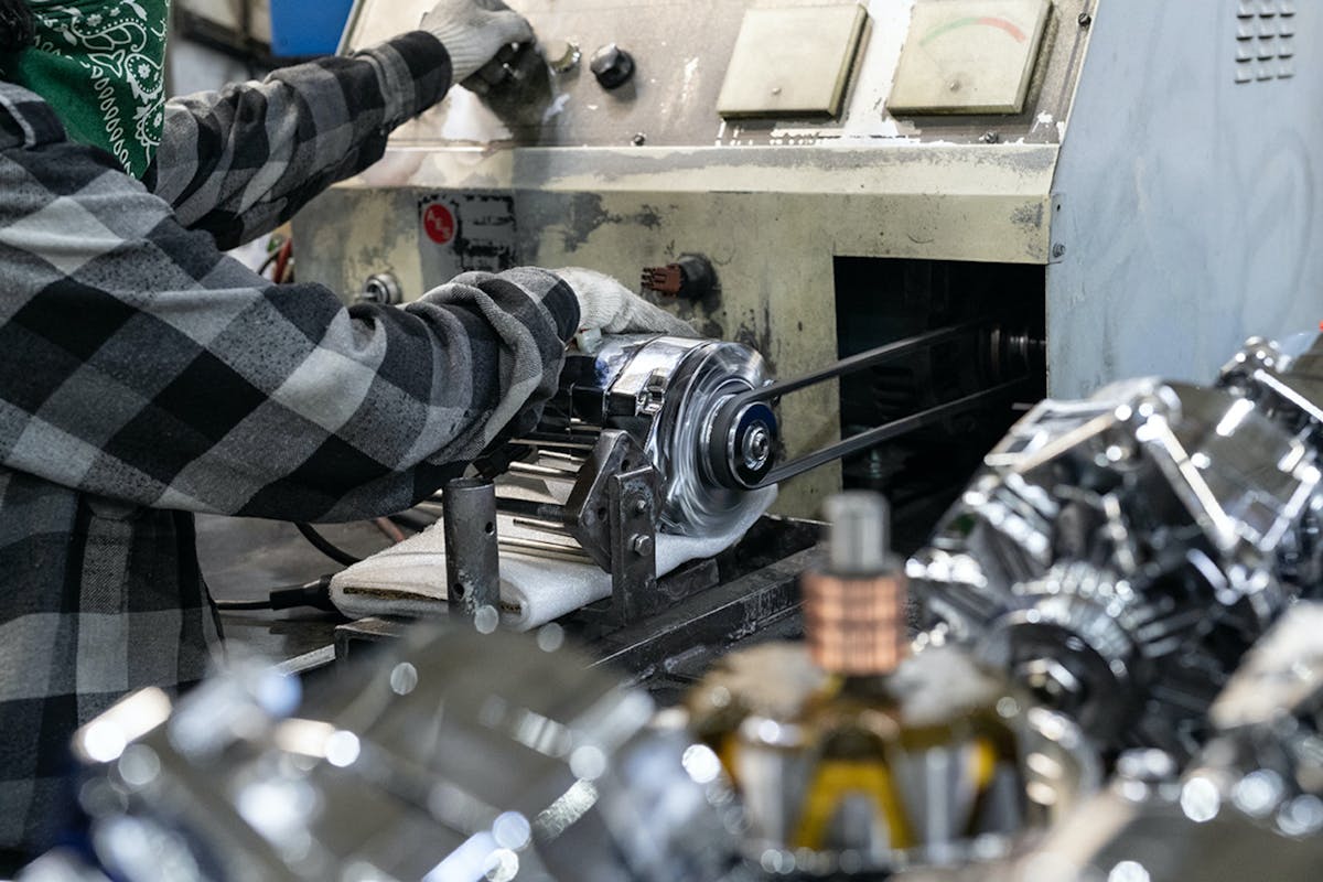 With quality-control a priority, the rotor manufacturing line is automated to provide consistent assembly. Each rotor is precision machine cut to ensure the proper air gap for each alternator. This requirement helps the alternator reach the highest output possible at idle – Powermaster’s trademark and tradition. The team proudly documents the output on a “Proof of Performance” tag on every alternator. The rotors are dual-plane balanced for smooth performance and long life. Likewise, alternator pulleys are manufactured in house to exacting specifications.