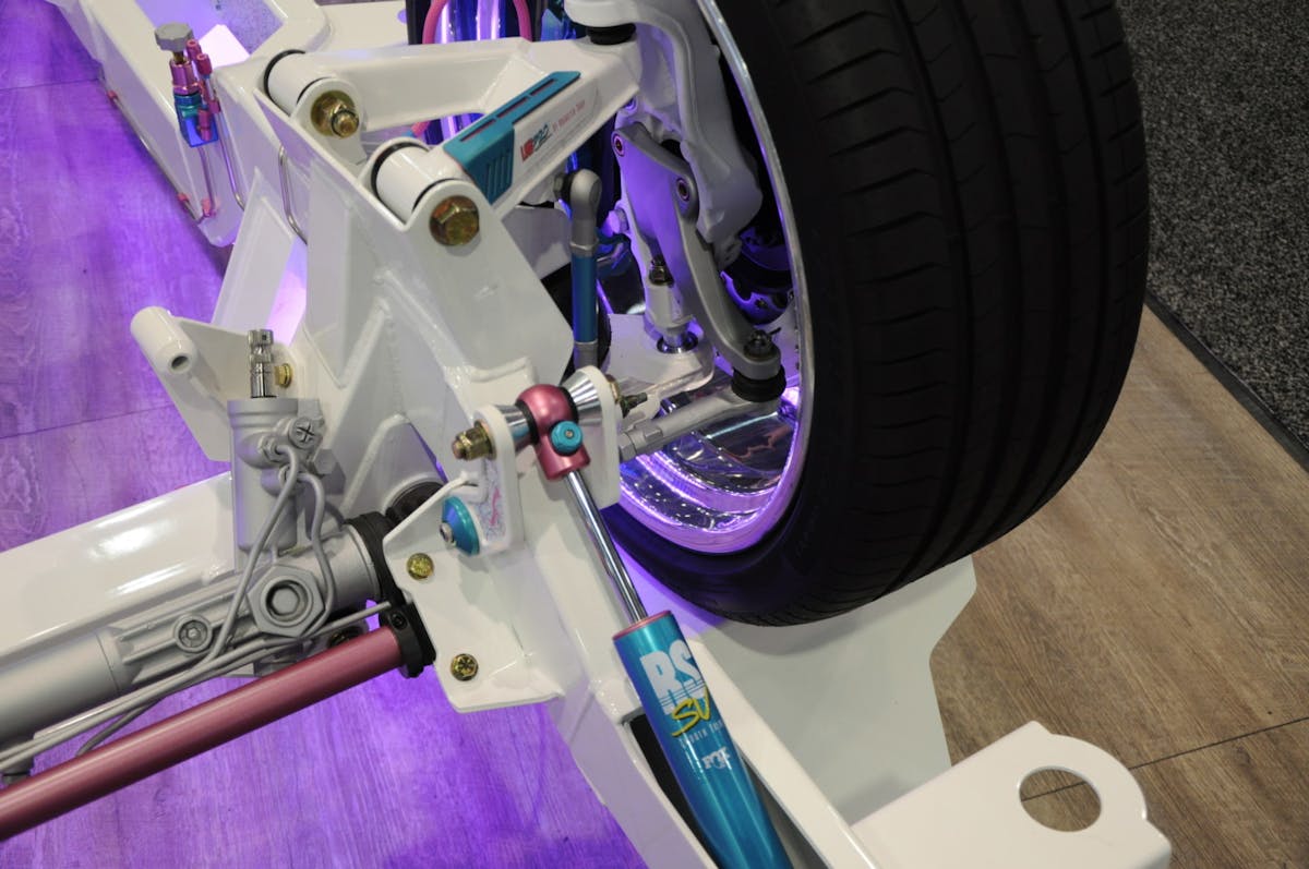 We asked if this chassis will be offered with coilovers or only air ride. Pat explained, “We have it set up for air ride right now, and we really just wanted to focus on that stance. We’re throwing around the idea, but we don’t have a timeframe on when we will be offering something with a standard height and coilovers.”