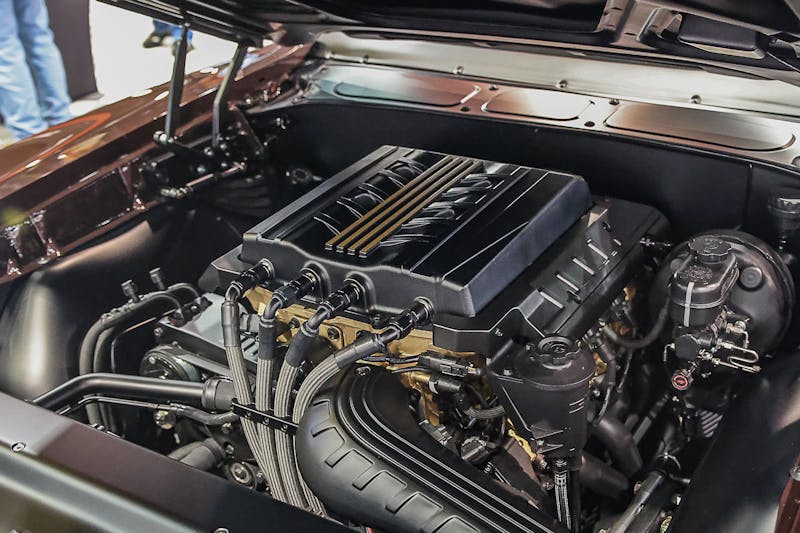 You can’t build a muscle car like this and give it a meek engine. The 6.2 liter supercharged LT5 from Chevrolet Performance that Detroit Speed & Engineering slid in between the front fenders of the GTO cranks out a healthy 755 horsepower. The engine was dressed with one of Holley’s premium mid-mount accessory drive systems. Behind the LT5, you’ll find a T56 transmission from Bowler Performance that transfers the horsepower back to a GearFX Ford 9-inch rearend that’s filled with a set of 3.82 gears.