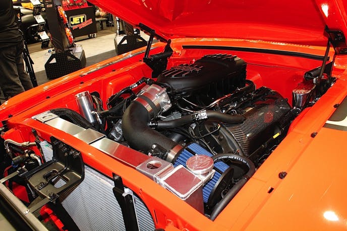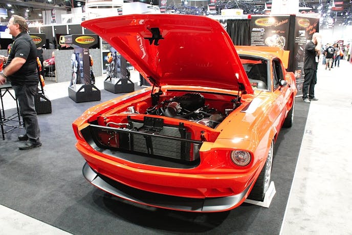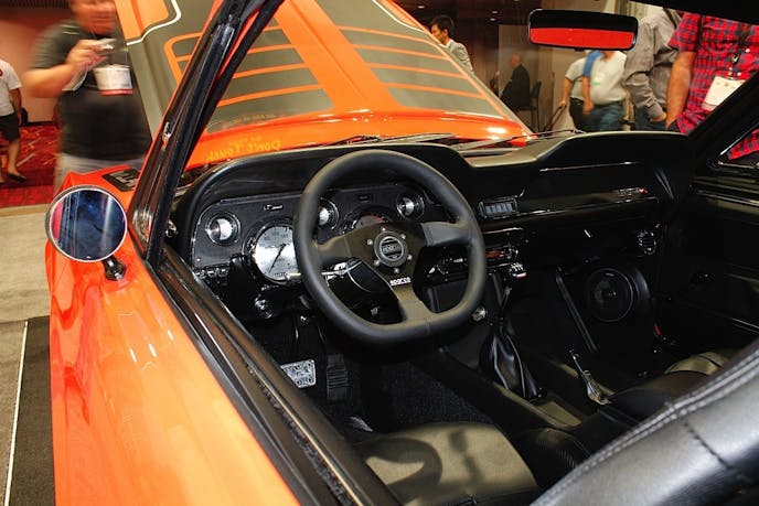 To keep the canyon-carving Mustang headed into the turns and hitting the apex just right, DSE’s Aluma-Frame front suspension system fitted with Corvette-based control arms fit the bill. Super wide Grip Equipped Series Forgeline wheels are sitting at the corners, with 18×9.5-inch up front and 18×12-inch out back.