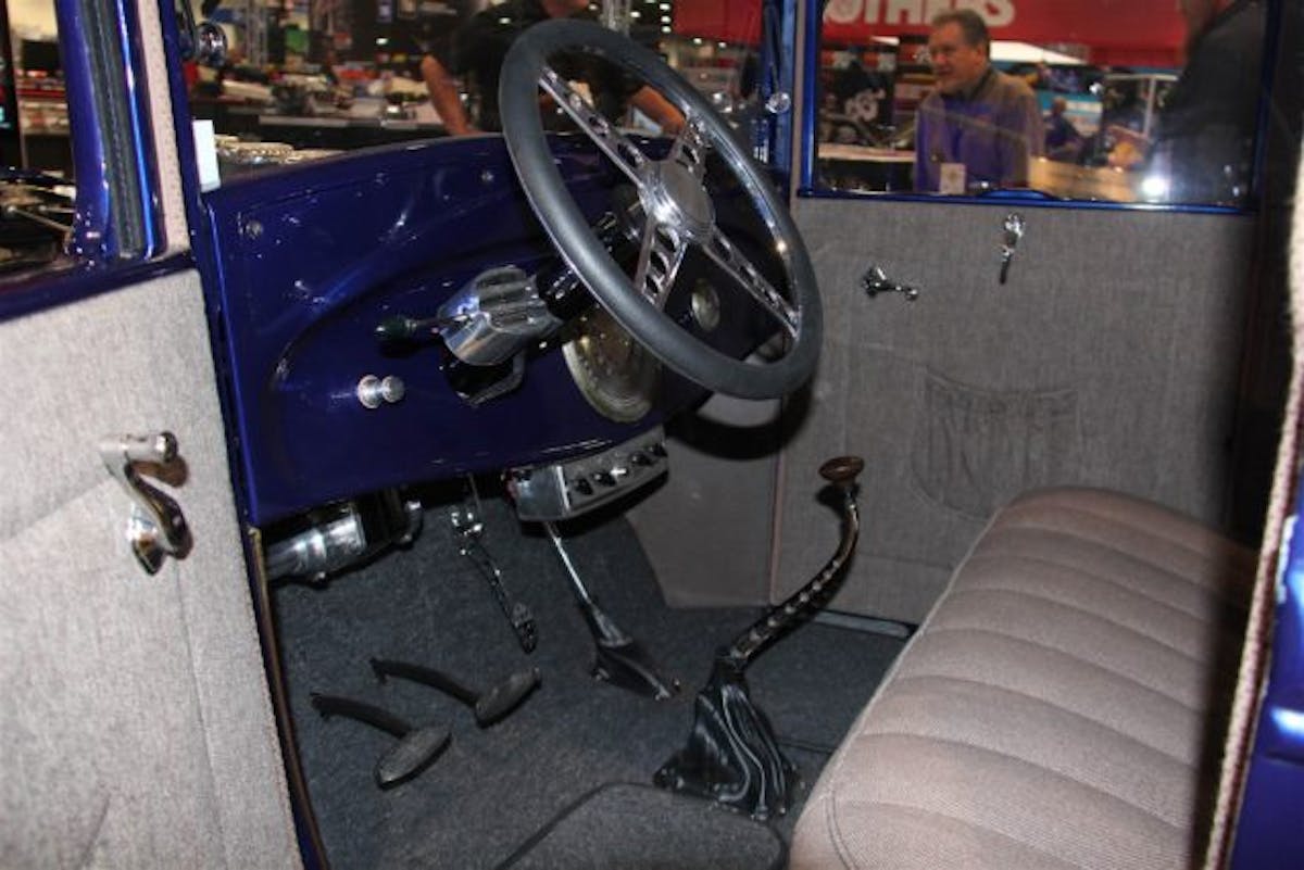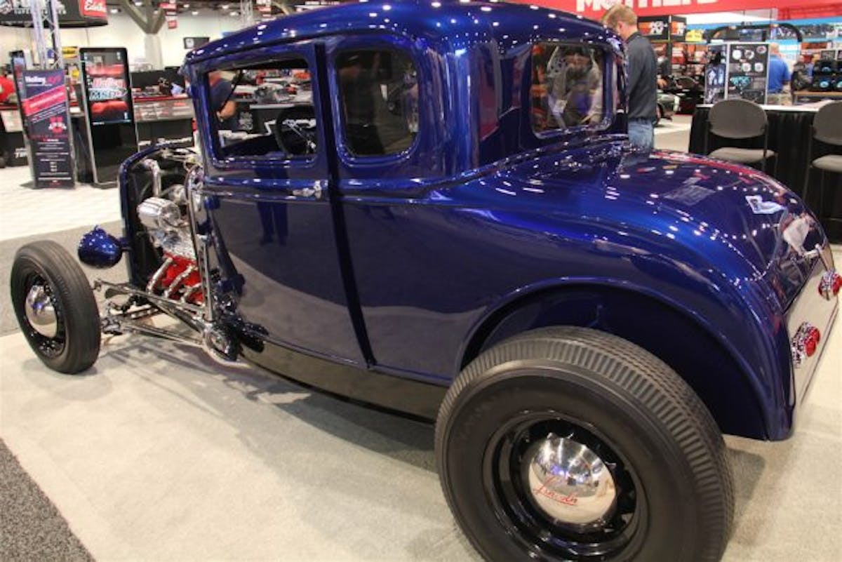 Pausing at the National Street Rod Association’s booth at SEMA to get a better look at the period correct Model A with a blown Lincoln V12, we got the background story on this build from Ty Hauer, Operations Manager for Reisinger Custom. Here is the story as Ty tells it: