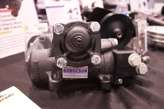 We stopped by Borgeson’s booth at the 2018 SEMA Show, and went over some of the new products on display for 2019. Namely, its new 12.7-1 steering box for ’67-’92 Camaro, ’64-’77 Chevelle, ’68-’74 Nova, and ’78-’87 GM G-Bodies. The new Borgeson Street/Performance Power-Steering Box has a quicker-than-stock ratio of 12.7:1, with positive on-center and road feel. It’s a direct bolt-in application that fits the original power-steering pitman arm.