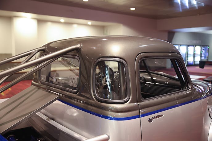 “We actually took three inches out of the roof of the truck. The rear window was relocated, too. This was done so when we chopped the corner windows everything could be kept symmetrical. The only window that’s still stock is the rear window — everything else was modified so it would all match,” Jim says.