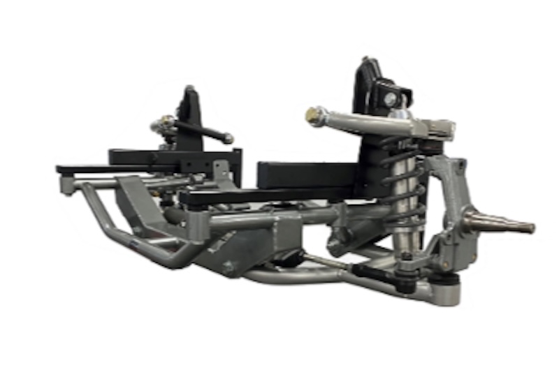 It includes tubular control arms, Wilwood brakes, adjustable coilover shocks, 2-inch drop spindles, and power rack-and-pinion steering.