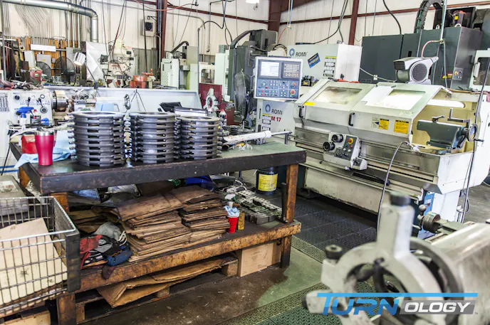It's incredible to see how a stack of billet blanks gets made into pieces of art that no one will ever see. (By the way, that's a Lambo flywheel on the right.)