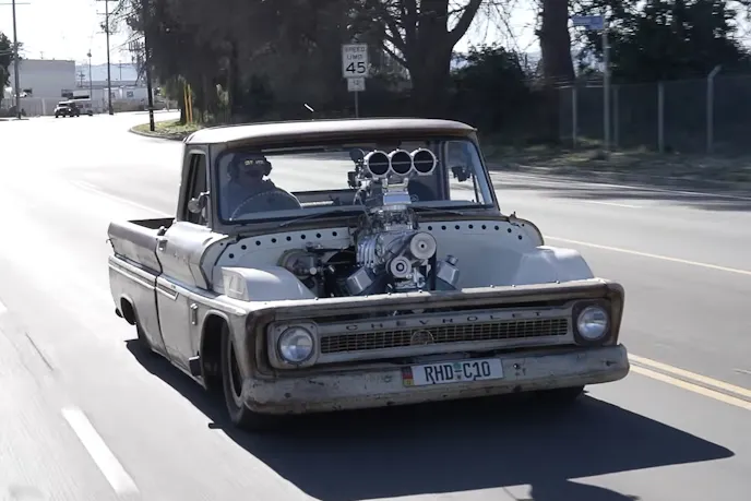 Shawn Creswell from Old Scool Creations wanted to put a really unique twist on his 1964 C10 project truck. So, Shawn decided to make his C10 right hand drive and went all out with a supercharged big-block Chevy for power. Shawn’s C10 drags frame, does smokey burnouts, and is a menace to society like any cool hot rod should be.