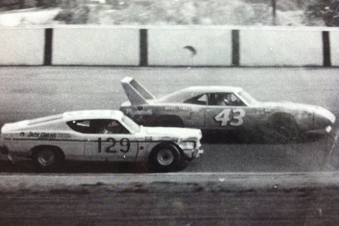 Grandfather Jerry Griffin racing Richard Petty at Riverside International Raceway in a 1970 NASCAR event.