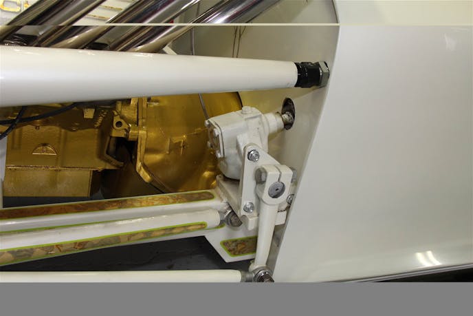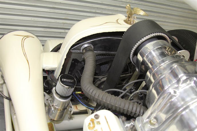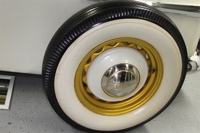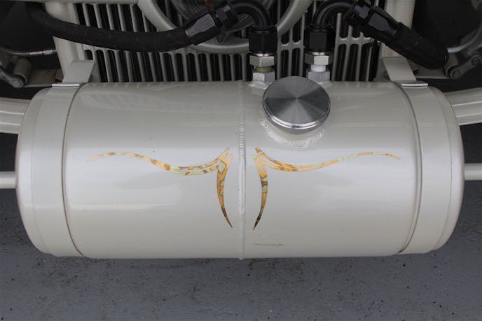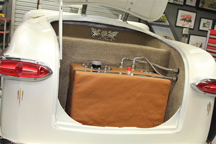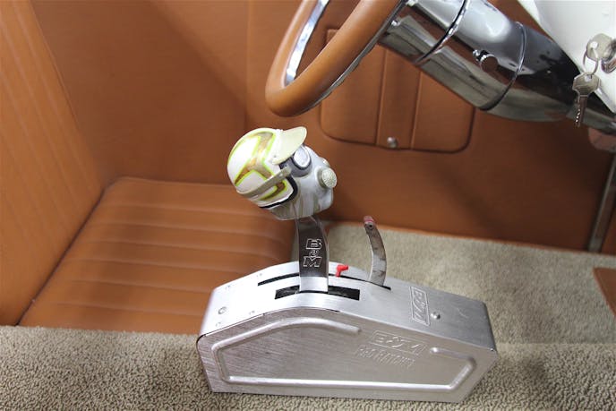 Hanging behind the monster V-6 is a beefed up Turbo 400 that twists a custom driveshaft. A Ford 9-inch rearend spins a set of gold Artillery wide-five wheels that are covered in Firestone, original tube-type 6.50/16 wide white walls. Currently, the braking is provided by Ford drum brakes all around, but Griffin plans on changing that to disc brakes soon. The front suspension is fairly traditional with split wishbone radius rods, while the rear uses a four-link with coilovers.