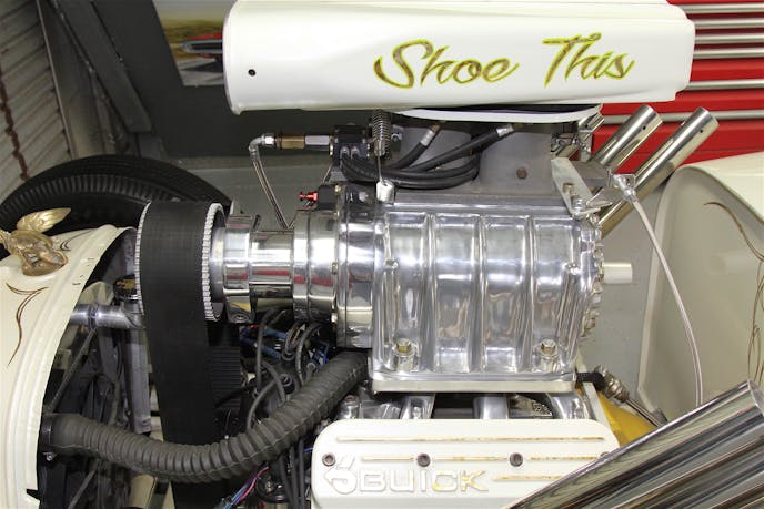 If blending two different Ford models from two very different eras wasn’t enough, Jacob stepped way out of the box and fit a Blown Buick V-6 in the engine bay. “It was something different. Something that not everyone else was doing,” he said. “I had to do some searching to find parts that I could massage and make work with this build.” Champion Cooling Systems provides the heat exchanging radiator to maintain a cool environment for the Buick powerplant.