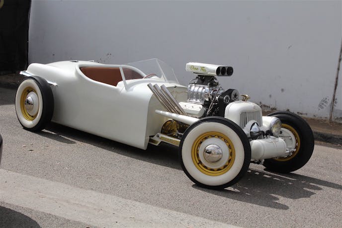 A unique build with a '27 Model T front and main body with a '51 shoebox rear and Buick V-6 engine.