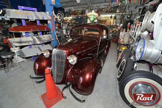 Car culture icons like Ed Roth and Jesse James as well rock stars like James Hatfield were just some of the shop’s eager and foreign celebrity visitors. The popularity of Paradise Road and Junichi increased due, in part, to a famous 1930 Ford Model A sedan that he named RODriguez.