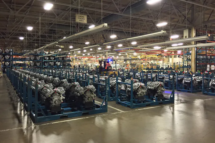 We went across the parking lot and visited the building where Banks Technology does its work on the Duramax based diesel engines for the Oshkosh Truck contract mentioned above. As we approached, we were greeted with a few dozen paletized Banks’ spec’d Duramax engines from GM that were destined to become Banks powerhouses in the coming weeks.