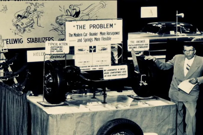 Rudy Hellwig was a pioneer in the sway bar industry. In 1941, he got a patent for his overload springs, and in 1946 he started Hellwig Products, pounding out all of their stabilizer springs by hand. His son, Don, used to go out with him in the beginning on weekends, and they would look for someone with a Ford that had transverse leaf springs.