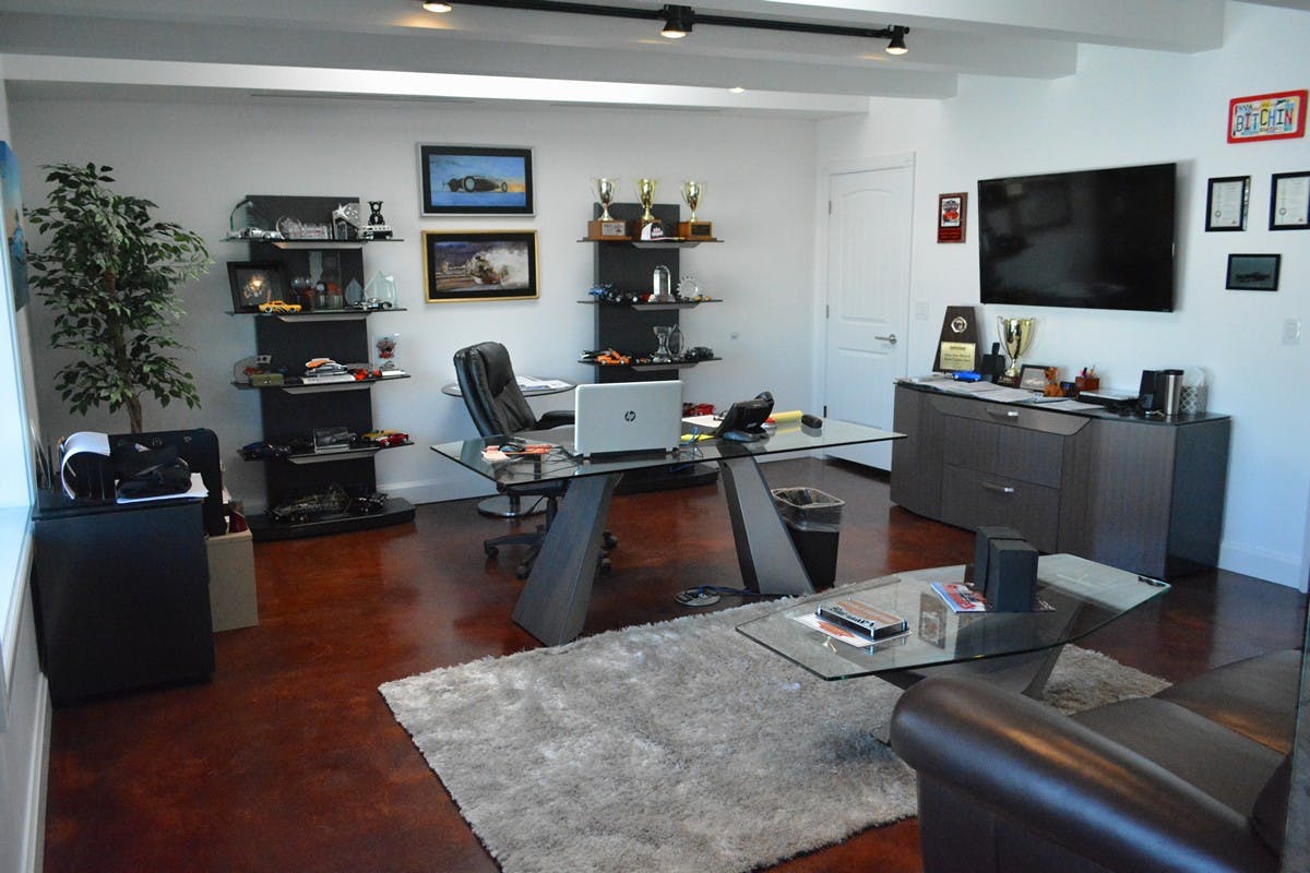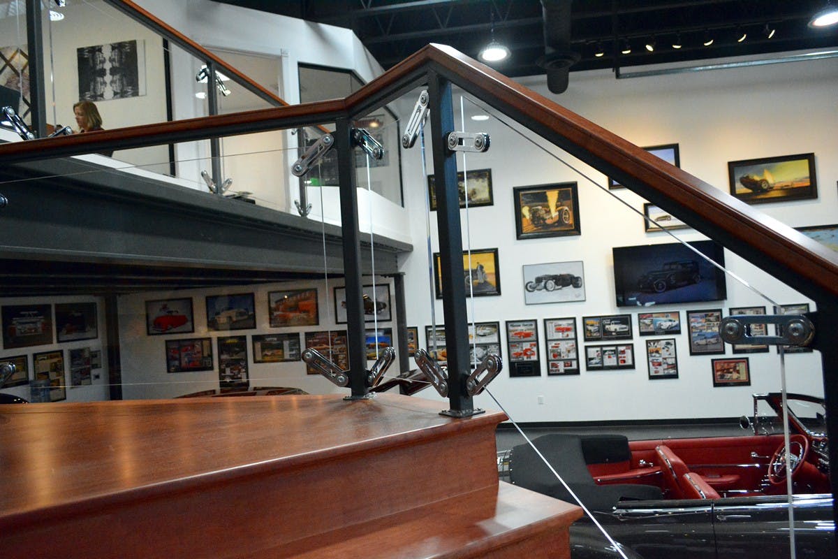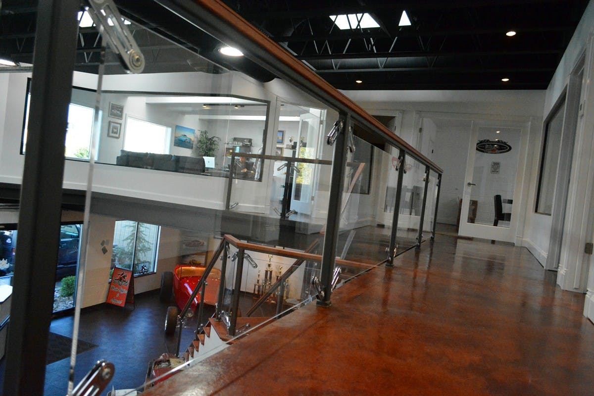 Every detail of the new space was thoroughly thought out, with modern, machined metal and glass banisters, stained concrete floors, a beautiful wood staircase, and of course, ample wall space for Kindig-Its’ countless magazine features and awards to be displayed with friends’ artwork and nostalgic pieces. Even the crown molding, vents, and woodwork are custom, with little “Easter Egg” features just waiting to be found in every corner.
