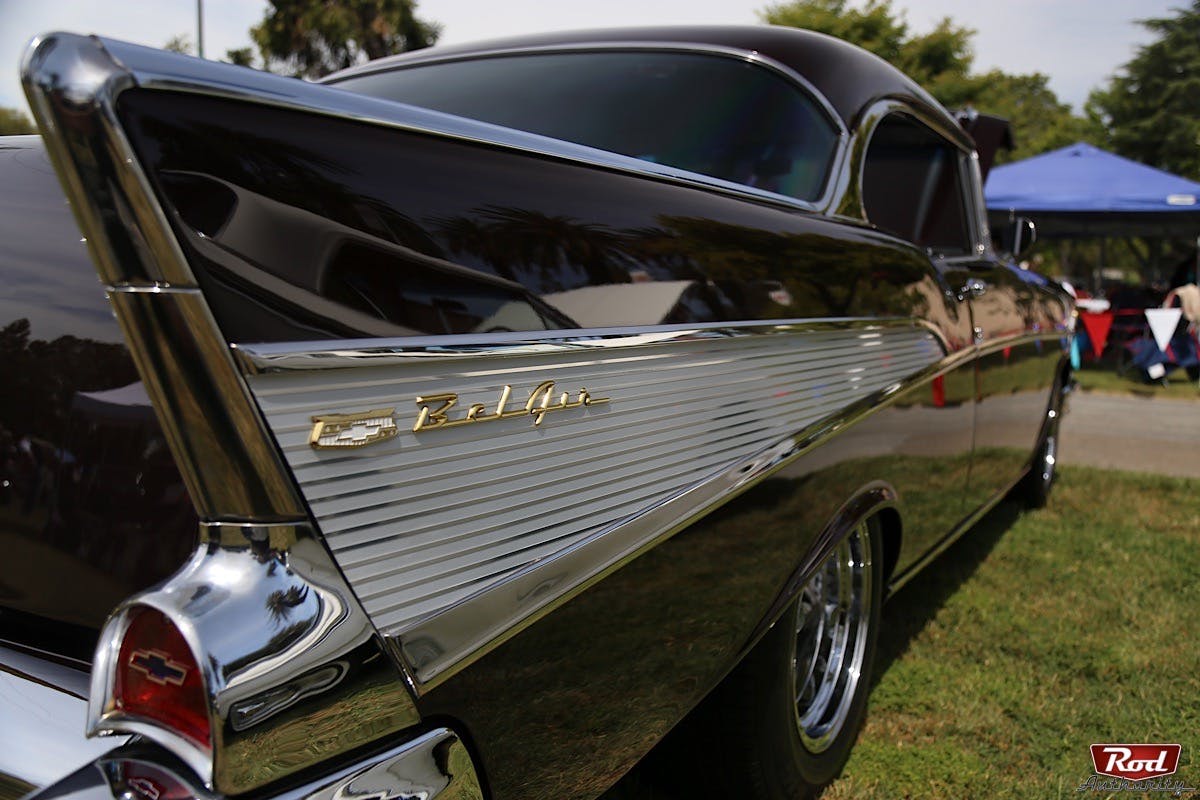 Residing in Newark, California, King and his beloved Bel Air simply captivated us from first sight. It’s black cherry, silver metallic paint accentuates all of the classic’s swooping curves and definitive tail fins, which were immensely popular during its heyday, and still hold true today.