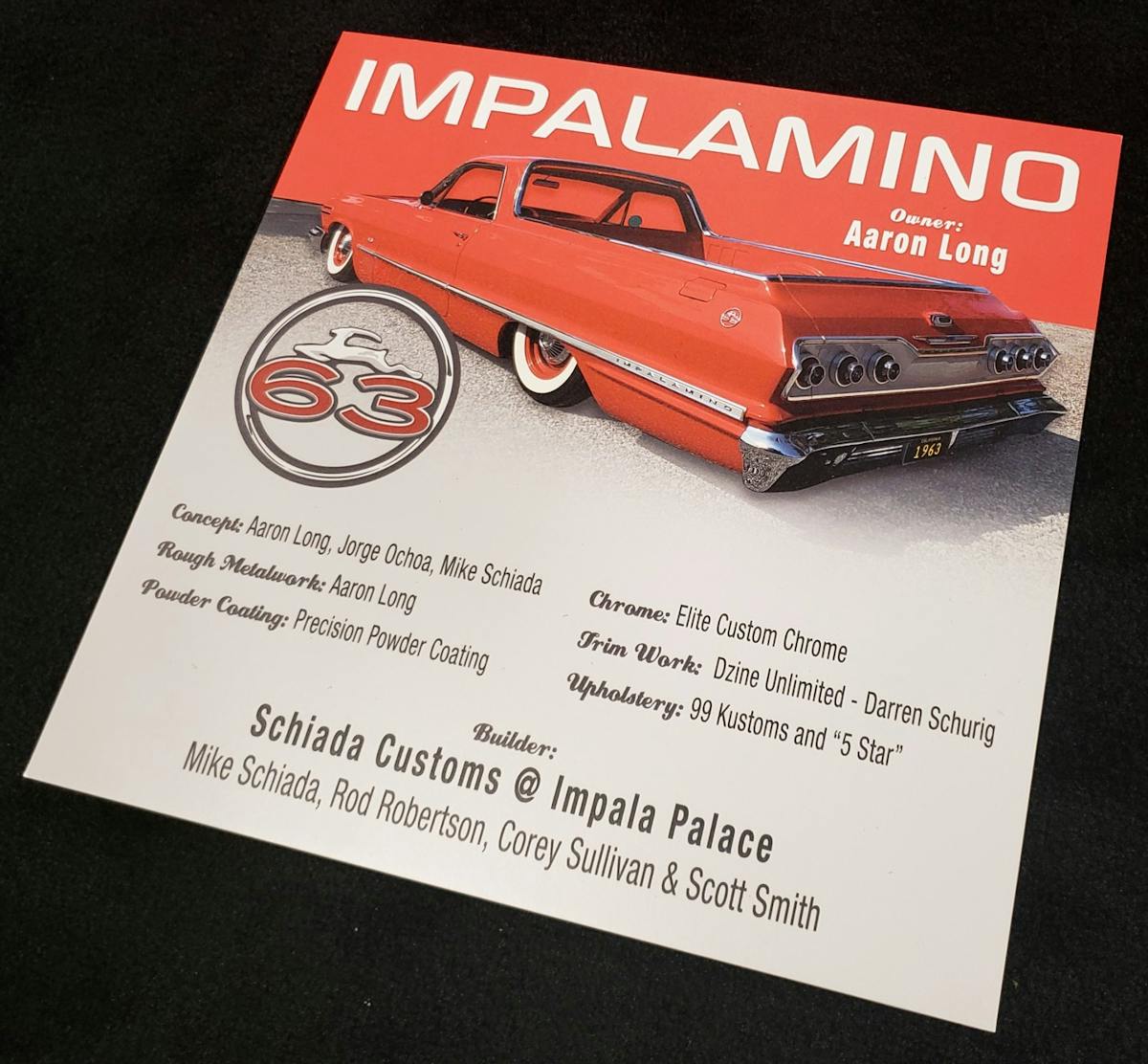 Starting off with a station wagon, the guys got to work reshaping the old Chevy. They ditched all the factory doors and added slinkier versions from a coupe. Then, the roofline was sectioned and pushed forward, looking like it could have come off the drawing board of Bill Mitchell’s GM Design back in the early ’60s. Rear quarters and a cargo bed were fabricated and Impalamino began to take shape.