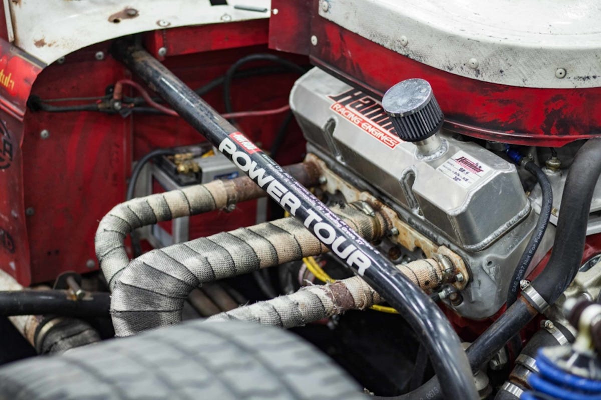 Inside the block are Wiseco flat-top pistons, a forged crank, forged connecting rods, and a Competition Cams 288-R10 roller cam. That foundation is joined by Comp Cams’ 1.5-ratio aluminum rockers and a big-block oil pump. The engine makes 505hp and 460 ft pounds of torque.