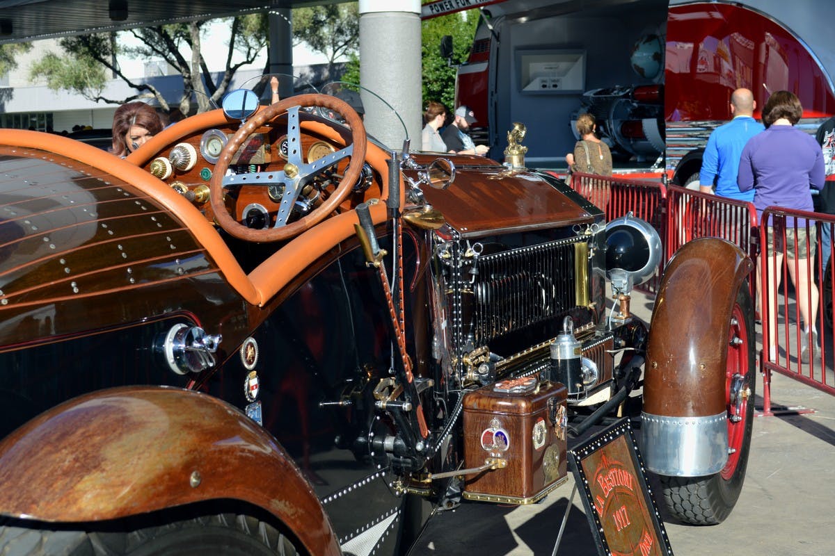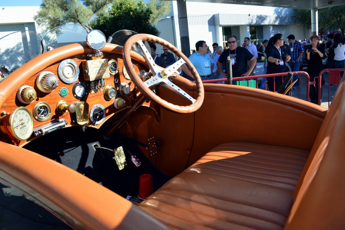 In this particular vehicle, Wales has incorporated some amazing pieces, including the same lever start switch as the 1914 Duesenberg Indy racer, half of a Model T ignition coil box, a vintage pocket watch, Weston ammeter and a Magneto Switch airplane compass.