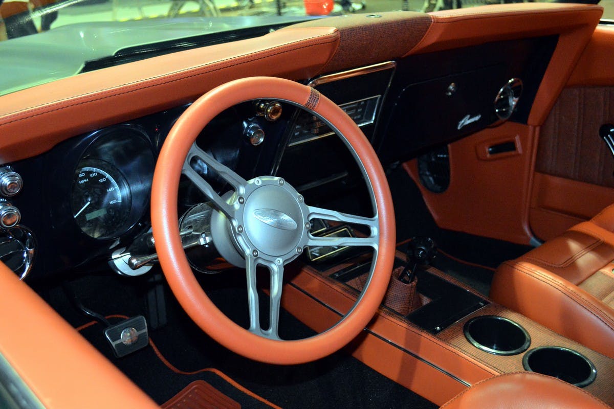 Topping the list of the top interiors from SEMA 2014 is one that can be found in Angelo Vespi’s Detroit Speed-built 1969 Camaro. Perfect for the competition enthusiast that also wants a bit of comfort, the Camaro’s interior was created first as an artist rendering by Eric Brockmeyer and then put together by M&M Hot Rod Interiors.