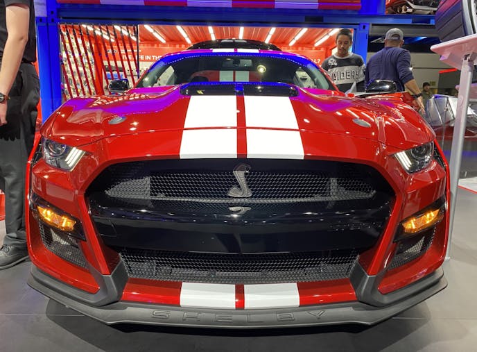 FoMoCo also brought some big guns to the show. Two of its new 2020 Shelby GT500s were on display – one in Race Red with white stripes, and another in Twister Orange.