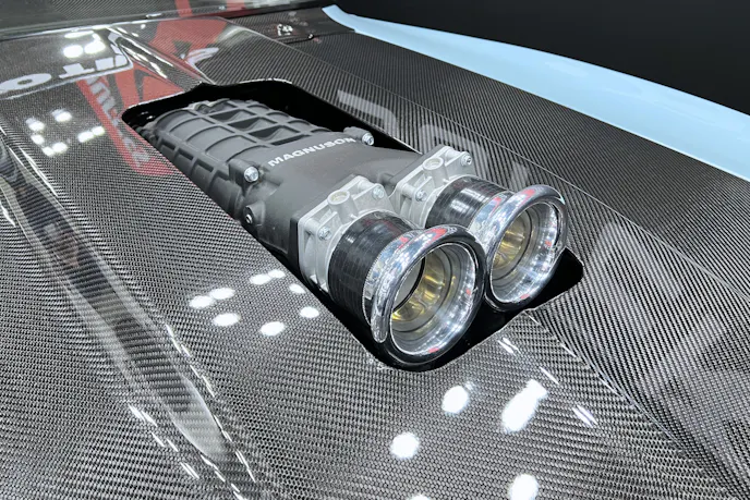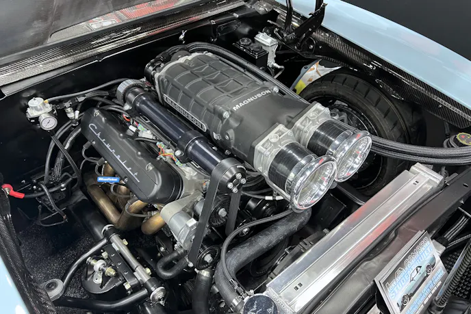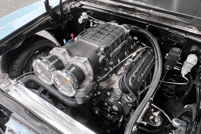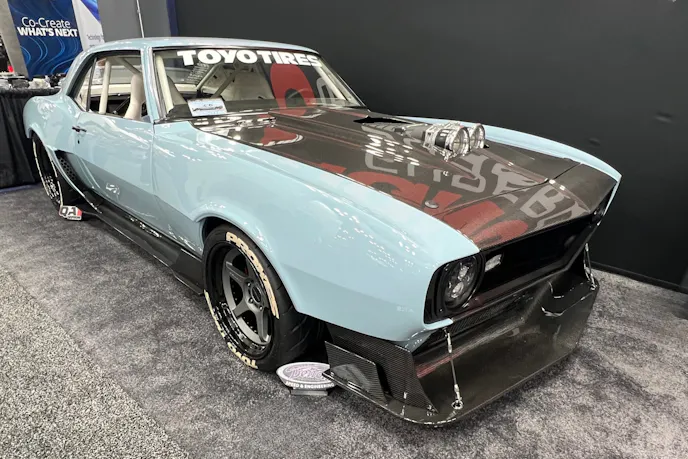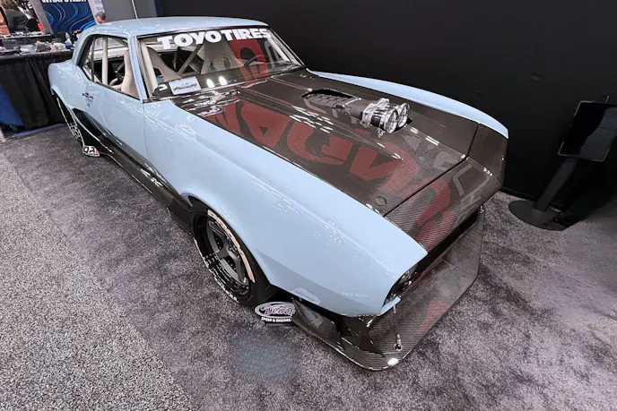 Power comes from a Blueprint Engines LS3 topped with a Magnuson 2650 supercharger and dual throttle bodies. (the Camaro was featured in the Magnuson booth at the 2025 Performance Racing Industry convention in Indianapolis.