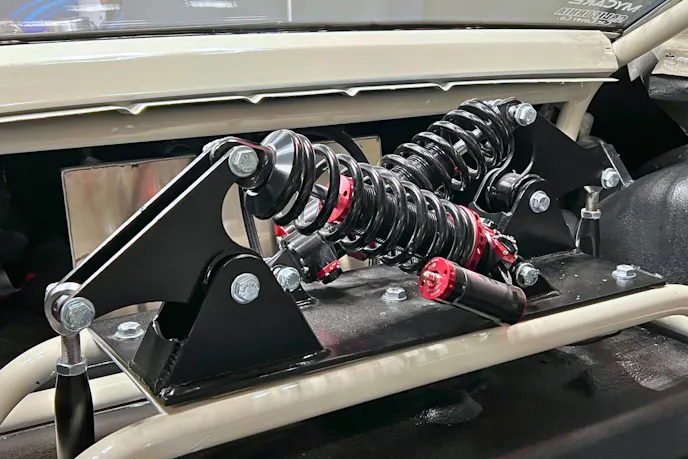 Detroit Speed supplied the hydroformed front subframe and suspension. Remarkably, the students designed and built the cantilever rear suspension and used QA1 coilover shocks. Incredibly, according to Darwish, the system was designed on CAD by the students. It was cut on their plasma table and fit perfectly upon the first attempt at installation. This was not their first cantilever rear suspension, either. The did one for a truck for the Lancaster Police Department in 2024.